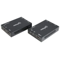 The Manhattan 1080p Compact HDMI over Ethernet Extender Kit can connect nearly any digital HDMI source (e.g., gaming console [PlayStation®, Xbox® and more], Blu-ray player, satellite receiver, digital recorder, etc.) to an HD display or projector at a distance up to 60 m (196 ft.) with one Cat6 Ethernet cable. The Kit provides reliable 1080p@60Hz resolution video and multichannel audio transmission over longer distances than HDMI cables alone. Its slim and compact design is ideal for installations in confined spaces or virtually anywhere.