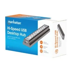 The Manhattan Hi-Speed USB 2.0 Micro Hub features an ultra-thin design that easily adds four Hi-Speed USB 2.0 ports to desktop and notebook computers, expanding connectivity for keyboards, mice, Web cameras and other peripherals. Its high-speed ports are USB 1.1 compatible to support older devices and provide data transfer speeds up to 480 Mbps for external storage, printing and other activities. A durable plastic case, compact size and bus power make it easily transportable to add USB connectivity almost anywhere. Installation is simple with plug-and-play and hot-swappable capabilities and a built-in USB cable that quickly connects the Manhattan Hi-Speed USB 2.0 Micro Hub to any USB port.